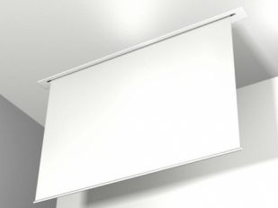 De geïntegreerde plafondmodule doet dienst als ophanging voor het projectiescherm. De afdekplaat wordt bevestigd met sterke magneten zodat er geen vijzen te zien zijn. U kan kiezen uit vier doeksoorten met elk hun verschillende eigenschappen.